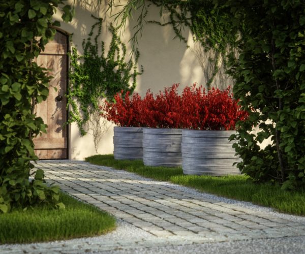 Donice z ultra betonu w ogrodzie