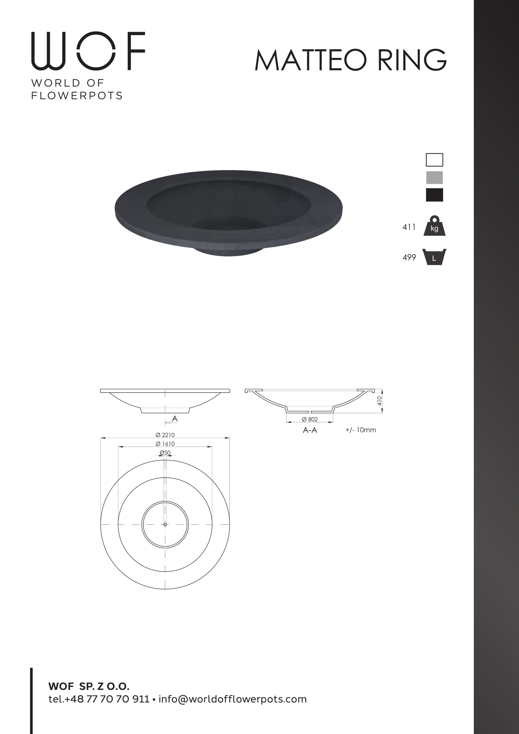 Sein Design ist dezent und zeitlos klassisch. Die Proportionen sind fein durchdacht. Mit seiner Größe von 221 Zentimeter im Durchmesser, ist der Beton Pflanztrog ideal als großer Akzent auf einem öffentlichen Platz oder im Garten. Der Innerdurchmesser beträgt 161 cm. Mit seiner niederen Höhe von 41 cm stellt er ein flaches großes Element dar, welches auf dem Boden zu schweben scheint. Die Blumen Schale zeichnet sich durch einen flachen breiten Ring am Rand der Schale aus, welche das Pflanzarrangement wie ein Rahmen umgibt. Den Pflanzkübel gibt es in mehreren Farben: in Weiß, Grau bis Dunkelgrau ist Matteo Ring verfügbar. In der Mitte unten hat der Pflanzkübel ein Loch, wo das Wasser austreten kann. Für jeden, der Wert auf zeitloses klassisches Design legt, ist dieser Pflanzkübel richtig.
