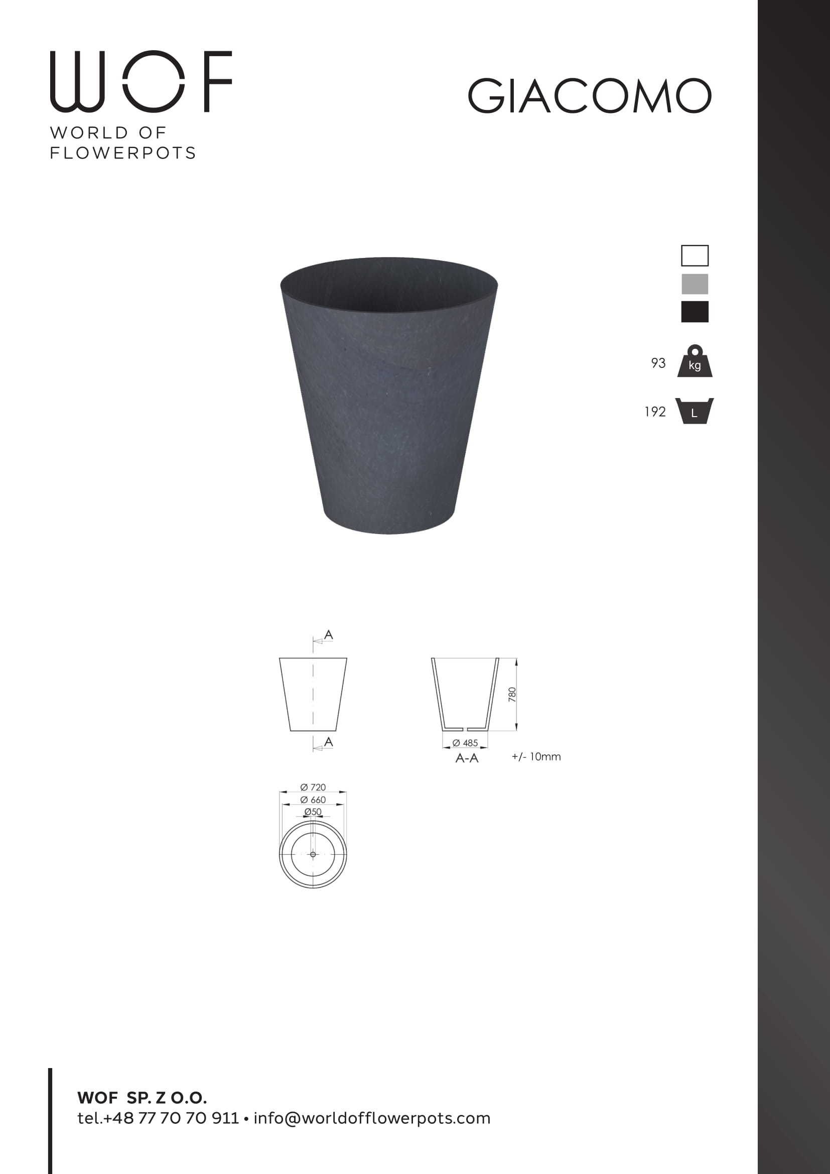 Das einzigartige Design Giacomos macht es möglich, dass jede Pflanze in ihrer Art, Farbe und Form sehr gut in diesem Pflanztrog aussieht. Das große Volumen des Kübels lässt Ihnen dabei in der Auswahl der Pflanzen viel Spielraum für Kreativität. Er eignet sich hervorragend für Solitärpflanzen mit höheren Blütenstengeln und größeren Blättern. Oder kombinieren sie eine wuchshöhere Staude mit kleinwüchsigen Pflanzen. Die nach unten hin etwas schmäler werdende Form des Pflanzkübels bietet sich auch für rankende Pflanzen wie Efeu, Immergrün oder manche Steinbrecharten an.Durch die besondere Größe können Zimmerpflanzen, die mehr Raum für ihre Wurzel brauchen, zum besonderen Blickfang ihrer Wohnung, ihres Vorzimmers oder allen Räumen, die etwas mehr Grün verlangen, werden.Durch das frostfeste Material kann der Blumenkübel aber auch sehr gut im Außenbereich verwendet werden. Auf der Terrasse, zur Auflockerung eines gepflasterten Platzes, zur Begrünung eines Innenhofs, Möglichkeiten bietet dieser Pflanzkübel viele.
