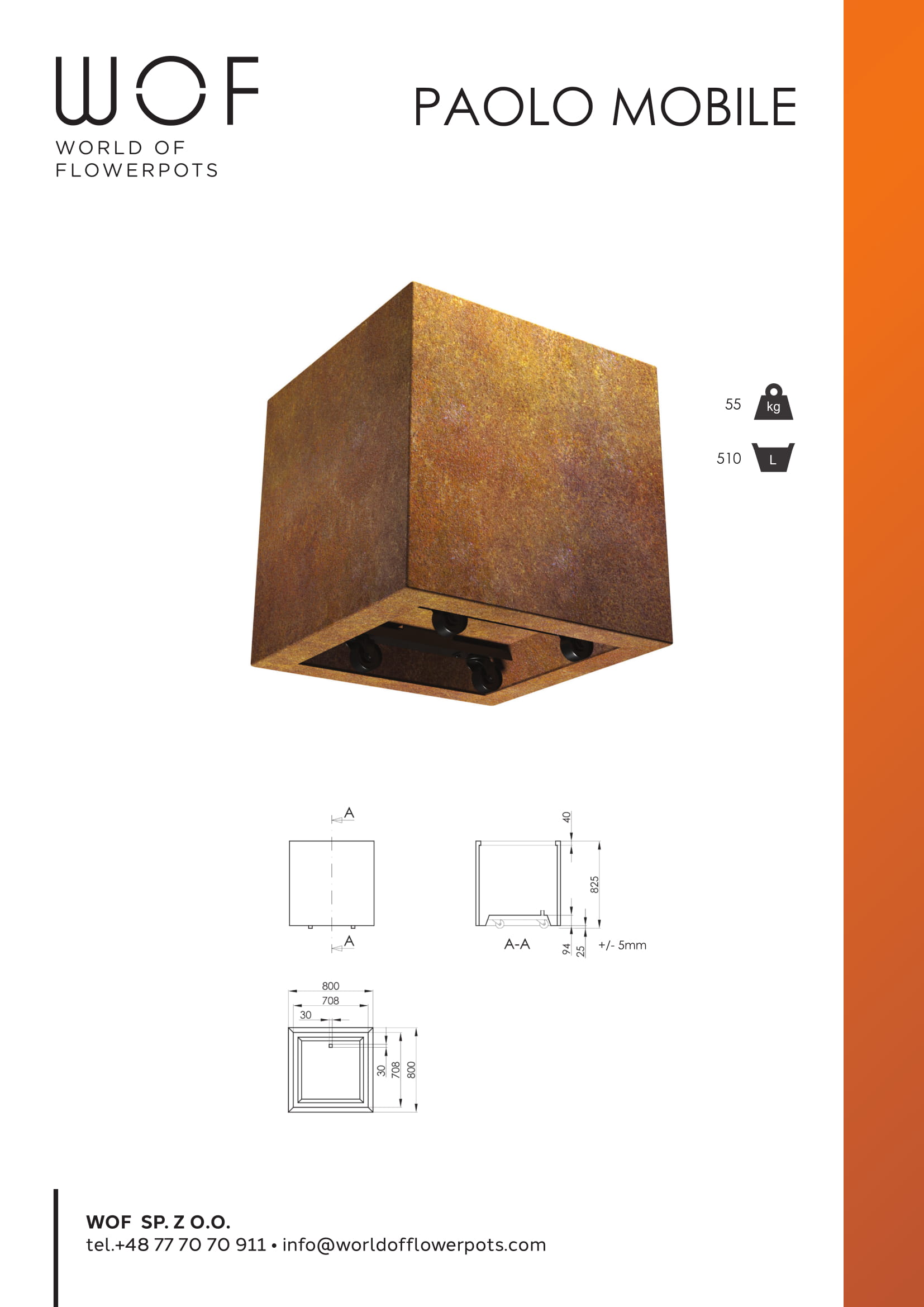 Kwadratowa donica z cortenu na kółkach Paolo Mobile