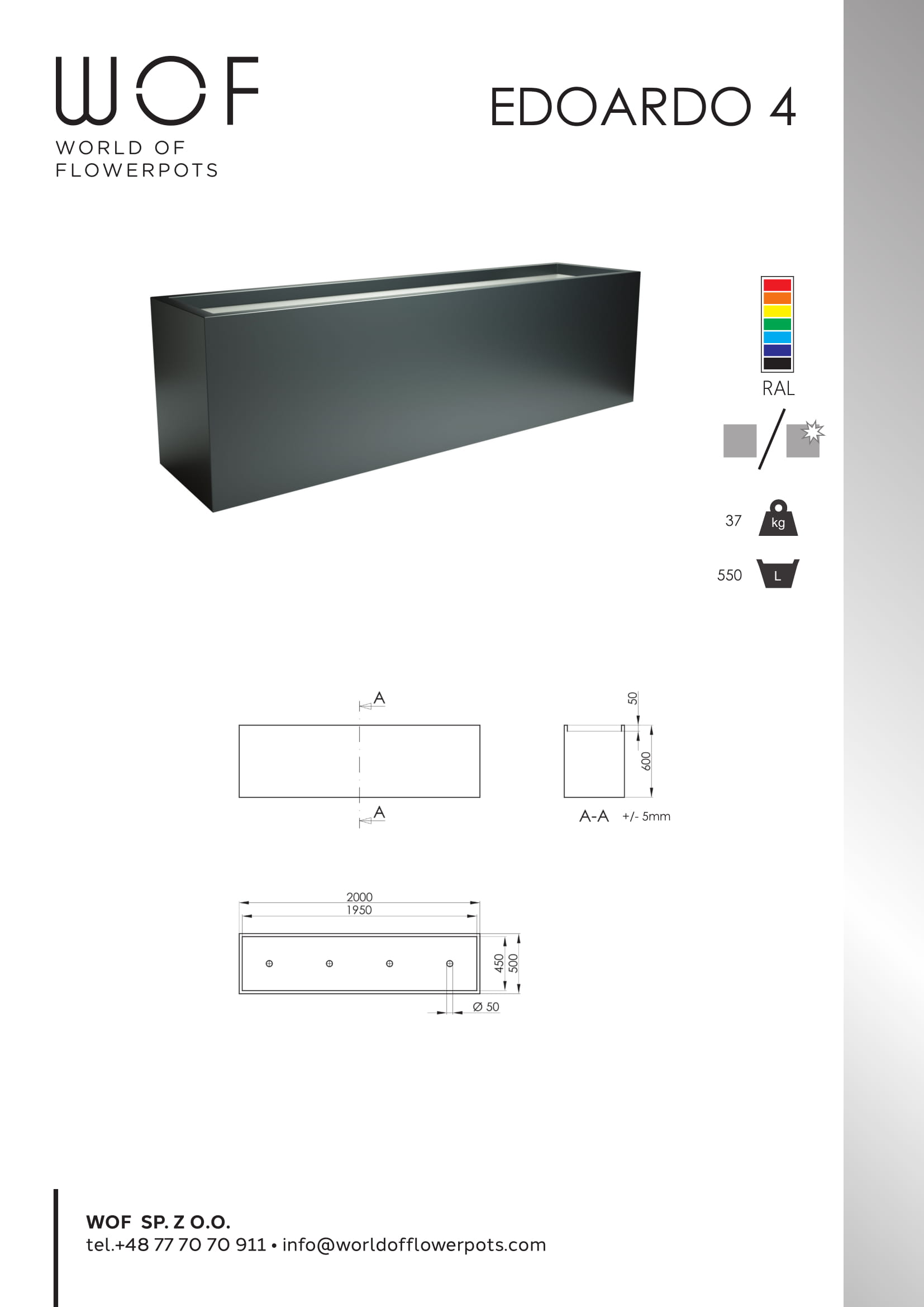 In dem robusten Kübel lassen sich mehrere Pflanzen nebeneinander anordnen. Die Wände sind bei diesem Modell robust verarbeitet, sodass keine Verformung durch die Befüllung mit Pflanzenerde entsteht. Dieser extravagante Metall Pflanzkübel eignet sich aufgrund seiner wetterfesten Qualität für den Außenbereich und lässt sich vielseitig einsetzen. Das Modell setzt die Bepflanzung stilvoll in Szene und kann auch hervorragend mit den anderen Pflanzkübeln von World of Flowerpots kombiniert werden. Der Pflanzkübel rechteckig empfiehlt sich sowohl für private Gärten und Terrassen als auch die Verwendung im gewerblichen Bereich. Angeboten wird der rechteckige Pflanzkübel Edoardo 4 in aktuellen Standardlackierungen. Bei einer Bestellmenge von mindestens 5 Stück lässt sich die Lackierung selbst gestalten.