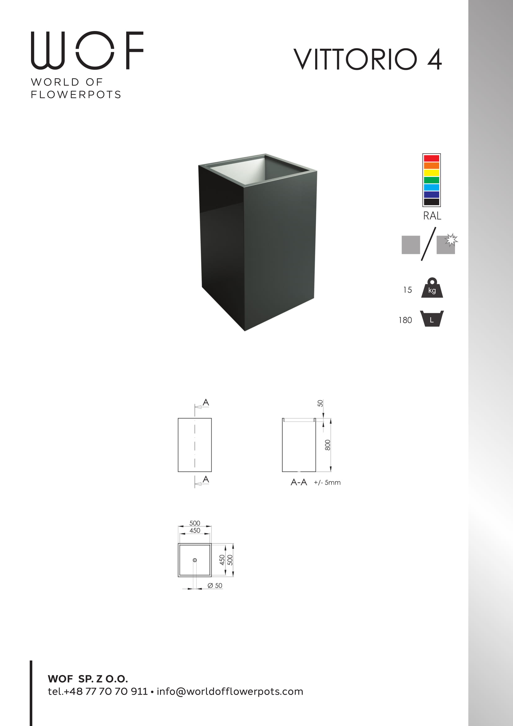 Gefertigt ist dieser hohe, eckige Pflanzkübel aus Aluminium. Dieses Metall eignet sich perfekt für Großtöpfe im Garten, auf der Terrasse oder für den geräumigen Balkon. Alu ist dauerhaft absolut rostbeständig. Das pulverbeschichtete Leichtmetall ist pflegeleicht. Es reicht, den Kübel nass abzuwischen oder mit dem Schlauch abzuspritzen. Die Außenschicht neigt nicht zu Flecken und ist von höchster Dauerhaftigkeit. In Hellgrau oder Dunkelgrau stiehlt der schicke Pflanzkübel aus Metall für den Außenbereich auch Ihren Blühpflanzen nicht die Schau. Der Kübel hat Breiten- und Längenmaße von 50 cm und ist 80 cm hoch. Die Außenschicht ist UV-resistent und widersteht jedem Wetter. Bei dieser Größe ist der Kübel mit 15 cm ein Leichtgewicht. Das nötige Standgewicht erhält er durch feuchte Erde und Bepflanzung.
