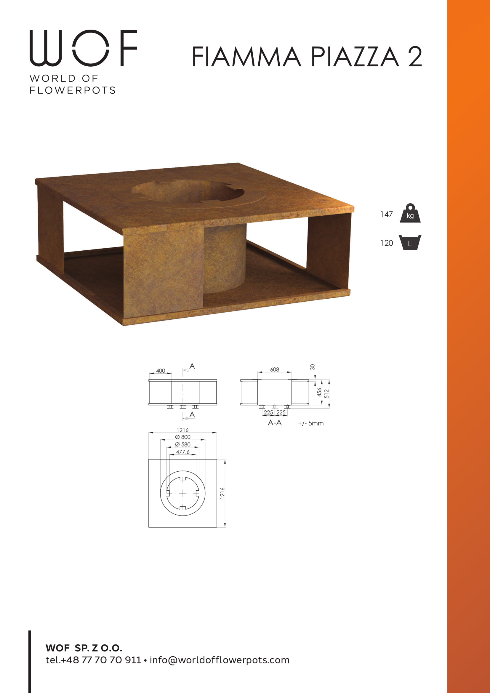 Palenisko Fiamma Piazza 2 jak inne dostępne wykonane jest w całości z cortenu. Jest to stal o podwyższonej odporności na warunki atmosferyczne. Powierzchnia przedmiotu wykonanego z cortenu i wystawionego na działanie powietrza oraz deszczu pokrywa się powłoką, która przypomina rdzę. Palenisko wykonane z cortenu wygląda naturalnie, a jednocześnie jest wytrzymałe i sprawdza się bardzo dobrze w aranżacjach ogrodowych. Aby ogród się dobrze prezentował wszystkie dodatki w nim umieszczone powinny nawiązywać do stylu w jakim ogród jest prowadzony. Palenisko Fiamma Piazza 2 jest uniwersalne ze względu na swój minimalizm. Inwestycja w palenisko daje wiele korzyści, gdyż jest źródłem światła i ciepła. Taką dekoracje można wykorzystać również praktycznie – do przygotowywania potraw. Palenisko wprowadzi do ogrodu magiczną atmosferę, przy nim wieczory będą niepowtarzalne i zapamiętane przez wszystkich domowników oraz gości. Zachwyci starszych oraz będzie wielką atrakcją dla dzieci.