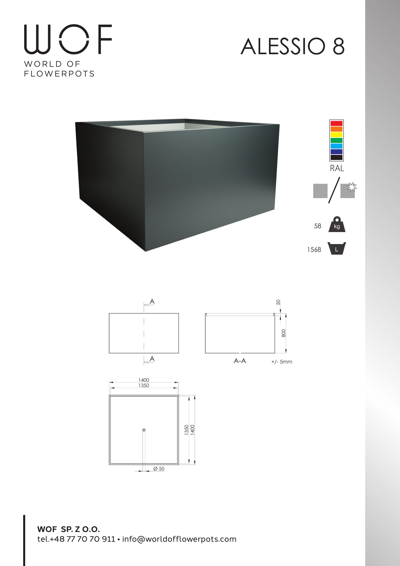 Das sehr hohe Gewicht sorgt für einen robusten Halt und der großzügige Innenbereich bietet den Pflanzen und Blumen den nötigen Platz zum Wachsen. Egal, ob Blumen die nur über einen gewissen Zeitraum wachsen oder Sträucher die das ganze Jahr über blühen. Der Pflanzkübel XXL ist der perfekte und ideale Blumenkübel. Ein besonderes Highlight ist, dass ab einer Bestellmenge es auch möglich ist, dass Kunden die gewünschte Farbe bzw. Lackierung selbst bestimmen können. Der Pflanzkübel rechteckig anthrazit ist optisch sicherlich ein Blickfang und im Bereich Qualität und Verarbeitung, gibt es ebenfalls keinen Grund für Beanstandungen. Egal, ob auf einem Balkon, einer Terrasse oder in einem Eingangsbereich bei Unternehmen, der Pflanzkübel XXL aus der Serie Alessio 8 macht immer eine sehr gute und ansehnliche Figur.