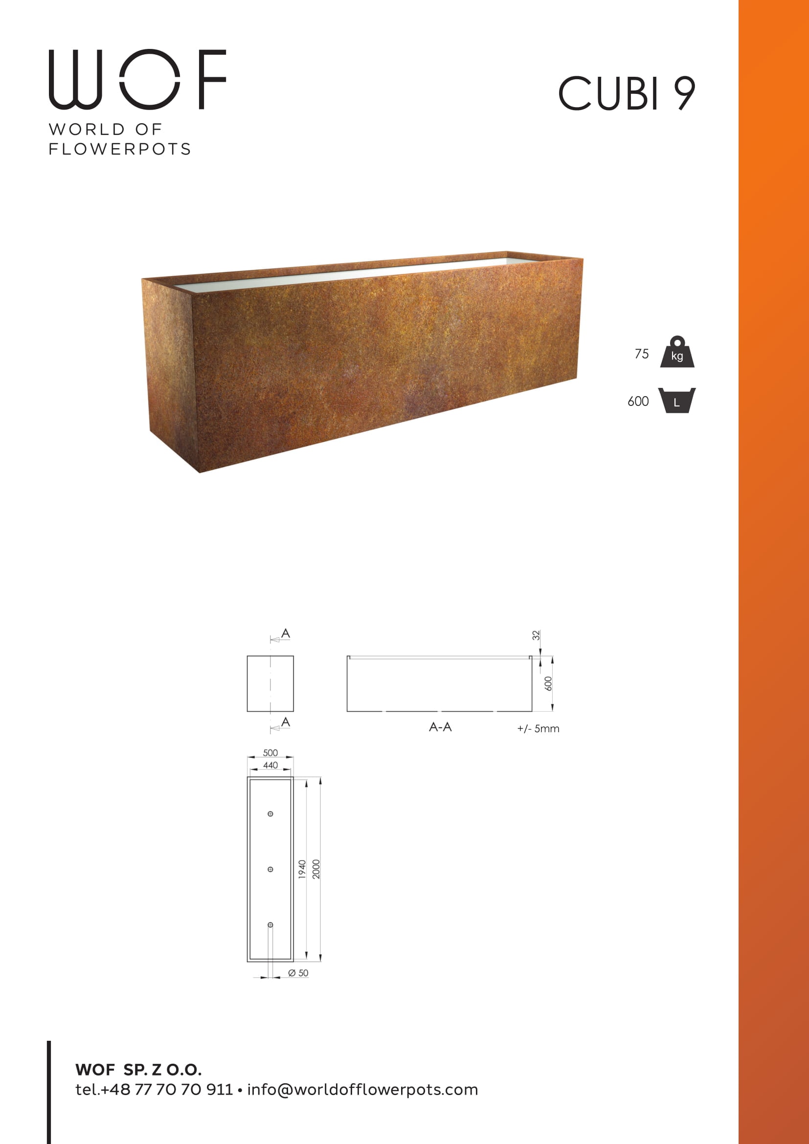 Die Innenseite des Cubi 9 Pflanzkübel xxl ist mit einer Styropor-Schicht zurIsolierung ausgekleidet. Mit seinem großzügigen Volumen von 600 Litern bietet der dekorative Pflanztrog auch größeren Grünpflanzen ausreichend Platz. Auf Grund der Materialeigenschaften eignet sich der Cubi 9, ihn ganzjährig im Außenbereich zu platzieren. Der hochwertige Corten Stahl rostet nicht und ist äußerst klimaresistent. Die Abmessungen des Pflanzkübel xxl belaufen sich bei einem Eigengewicht von 75 Kilogramm auf 200 Zentimeter in der Länge, 50 Zentimeter in der Breite und 60 Zentimeter in der Höhe. Der spezielle Werkstoff Corten Stahl bildet, ähnlich wie Kupfer nur eine Patina, die fest anliegt und den darunter befindlichen Stahl langfristig schützt.